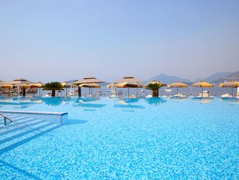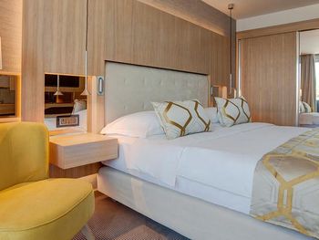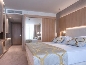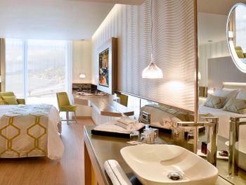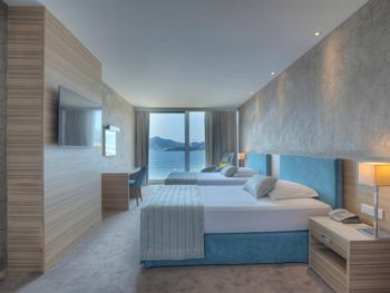 Номер странный , раковина вынесена в зону спальни, неудобно, везде брызги. Сан узел очень маленький, плесень в душевой кабине. У отеля свой пляж, большой, песчаный, шезлонгов всем хватало, но есть одно НО... море- небольшой закуток, окруженный лодками и катерами( насчитывали до 30 лодок).. Сотрудники пляжа утром метлой подметут дорожки по всему пляжу, потом этой же метлой смахивают песок с матрасов . В зоне бассейна тканевые матрасы и мягкая мебель недопустимо грязные Отель не рекомендую.
