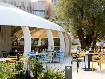 На территории работают 4 ресторана средиземноморской и интернациональной кухни с большим выбором всемирно известных вин. В многочисленных барах подают напитки и закуски.