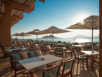 Территории у отеля практически нет: есть сам отель, бассейн и пляж. Сервиса и обслуживания у бассейна/пляжа нет. Есть один бар, но ходишь за напитками сам. Завтрак хороший, но очень маленький ресторан и зона на улице и при полной загрузке приходилось ждать столик. Отель сильно уступает в сервисе турецким хорошим пятёркам.