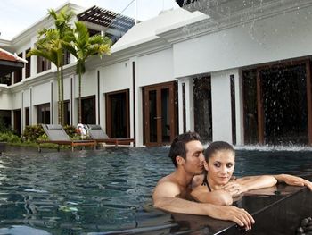 останавливались в этом отеле на несколько дней. Виллы очень красивые, со своим бассейном, пляж совсем близко, но вода в море мутная. очень достойная кухня, качественные морепродукты, все вкусно. Отель расположен в тихом месте, если вы хотите уединения, то это отличный вариант