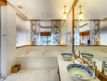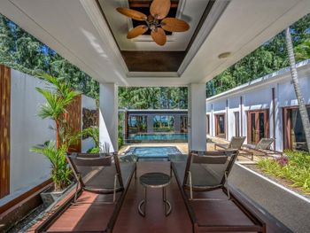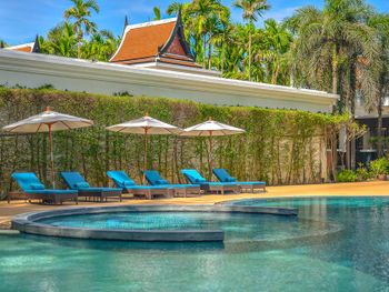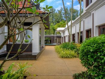 Для тех, кто едет отдыхать, а не тусоваться, любит гулять, тишину и покой. Выбор отеля был сложен: рассматривали только 5*, и он должен был соответствовать. Чтоб не в городе, но можно было пешком дойти до магазина, рынка, едален. Чтоб был чистый пляж, прозрачное море и на пляже было мало народу. Чтоб был бассейн в номере. Чтоб был нормальный завтрак. Все, что хотели - получили. Вокруг - заповедник, леса, из-за этого создаётся ощущение уединенности. Много ресторанов до которых идти 15-20 минут, супермаркет на таком же удалении, где закупались водой (обычную воду дают бесплатно в неограниченных количествах), несколько фруктовых палаток, несколько отелей. Пляж нелюдный, но очень чистый, даже после шторма быстро все убрали. Море прозрачное, дно не илистое, отлив - метров на 5, так что купаться можно в любое время суток. Номер выше всяких похвал. Брать лучше 2-спаленные виллы, они находятся на первой линии с выходом на пляж. Аэропорта не слышно вообще. Пешком до пляжа с самолётами - минут 40, на тук-туке (100бат) - 10 минут. Номер отличный, две спальни в противоположных концах дома, огромная кухня-гостинная с холодильником и плитой, и двор с 4 лежаками, навесом, бассейном. В итоге мы загорали во дворе (под навесом с вентилятором днём отлично лежится), купаться ходили в море, часа по 1.5. заказывали в номер пиццу - вполне съедобная. Цены в ресторане раза в 2-2.5 дороже, чем в окрестных едальнях, так сто, кроме пиццы ничего не ели в отеле. Завтрак - шведский стол (не очень богатый, фрукты есть, но чаще всего арбузы, ананасы и папайя) и станция жарки блюд из яиц. Нас полностью устроил. Алкоголя на завтрак не дают. С людьми из соседних номеров встречались крайне редко, в основном было ощущение, что мы в отеле одни. Спа - очень дорого, но в 5 минутах ходьбы есть альтернативы. После поездок по острову порадовались, что выбрали именно этот вариант! В остальных местах на пляже море людей,отливы совершенно жуткие, так что во второй половине дня за морем нужно идти.