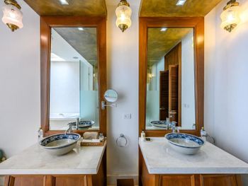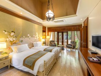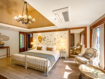 В оформленных в тайском королевском стиле интерьере вилл сочетается влияние Востока и Запада. Они обставлены классической деревянной мебелью и украшены тайскими рисунками и тканями. В распоряжении гостей всех вилл открытый павильон, хорошо оборудованная кухня, домашняя развлекательная система и ванная комната.