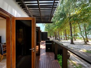 Сами виллы находятся на прямо на пляже. У нас был бич фронт со своим выходом на пляж. Потрясающий вид из окна. Свой двор с джакузи и лежаками, а так же навесом от солнца. Площадь виллы огромная. Завтраки шикарные, еды много, народу мало. Йога 2 раза в день! Тайский бокс. Тренировки включены в стоимость проживания!