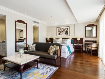 Красивые и функциональные номера, хороший вид с балконом (нам достался номер с видом на внешнюю сторону отеля, а не на бассейн). В номере есть кофемашина, что очень удобно.
