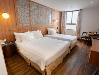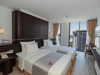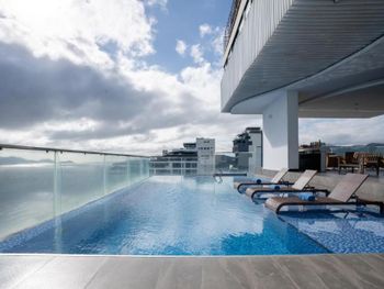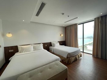 Вид с крыши этого отеля, и из верхних номеров, один из лучших в городе. В номерах чисто. Когда отель не заполнен - затрак для не притязательных, но всехда есть Фо, тушеное мясо ( каждый день чередуют, курицу, свинину , говядину), яичница и кофе. На ресепшн говорят , что на пляже есть отельные лежаки)) это наверное такая шутка. Покупали билеты на ресепшн гостинницы в «винперл», возникли проблемы на входе, лучше на месте. Рядом все есть , не так шумно, как ближе к центру.