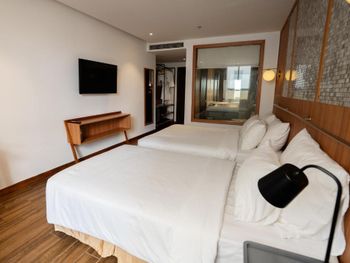 ну что ж: 1. завтраки шведский стол большую часть нашего пребывания отсутствовали. было всего лишь несколько скудных позиций. 2. слышимость. если вы хотите спокойно поспать до обеда в свой отпуск,то этот отель не для вас. нас переселяли из-за слышимости, по моей просьбе. если еще неадекватные,невоспитанные соседи,то это вообще ужас. уборка приходит ну очень рано. в 9:00-9:30 они уже начинают долбиться в дверь. завтраки до 9:30,не позже. но я уже пожалела,что взяли завтраки,можно сказать,выкинули деньги. 3. чистота. плохо убираются. влажную уборку начали делать только после моих просьб и жалоб на то,что над кроватью тонну пыли обнаружила после уборки. 4. вода в бассейне грязная!!!!! мутная!!!! и плавки с купальником неприятно пахнут после купания,особенно,если полежат. ну очень неприятно. 5. спорт-зал был одним из единственных плюсов,мне нравилось там заниматься,пока его не закрыли на ремонт во время нашего пребывания🥲👍🏻 6. спа и сауна не работают. уберите из описания отеля,что вы предоставляете данные услуги,ибо вы их ПО ФАКТУ не предоставляете. 7. сам отель несвежий. видно,что советских времен как будто. в первом номере,куда заселились,немного пахло сыростью. 8. в первом номере плохо работал кондиционер. если бы не слышимость,то я бы просила переселить из-за кондея,так как он не охлаждал,а морозил. в первом номере прожили три дня и все три дня спали под двумя!!!!! одеялами!!!!!! был невыносимый дубак. 9. тв. нет интернета на телевизоре. подключали ноут через hdmi и не получалось настроить нормальное разрешение. НИКАК. ПАРЕНЬ АЙТИШНИК. в итоге смотрели ютуб на НОУТБУКЕ.