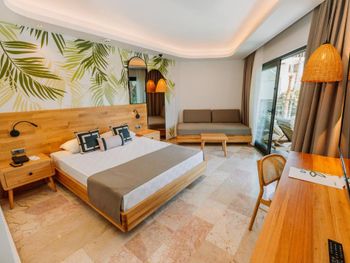 Отдыхали с мужем и годовалым ребенком в отеле в июне. Из плюсов могу сказать, что территория отеля большая, красивая, чистая, много зелени. Разнообразная еда в главном ресторане. Номера убирали каждый день. Главным минусом для нас были море и вход в него. Море не совсем чистое, вход галечный и каменистый. Так как отель находится в 17 км от г. Фетхие, мы думали море будет чище. Приходилось ездить на пляжи Олюдениза, там море отличное в плане входа и чистоты. Но мы арендовали авто, на общесвенном транспорте, думаю, автобуса 2 надо сменить, чтобы доехать. Бассейн один для взрослых, второй для детей. Маловато для такой территории. Заоблачные цены в отеле на профессиональную фотосъемку. Фотографы не совсем асы своего дела. И еще момент, это клуб отель, и лифтов нет в корпусах. Вначале нас поселили на 3 этаж в дальний корпус. С ребенком не совсем удобно было подниматься на 3 этаж, коляску приходилось оставлять на первом. Попросили потом поменять номер ближе к ресторану и бассейнам и на первом этаже. Поменяли, но не очень приятные ньюансы возникли в плане сервиса. В целом неплохой отель. В основном отдыхают семьи и пожилые люди. Но на мой взгляд, завышена стоимость проживания в этом отеле. Еще раз не приехали бы. Но на вкус и цвет товарища нет, поэтому это уже на усмотрение каждого путешествующего. Всем отличного отдыха!