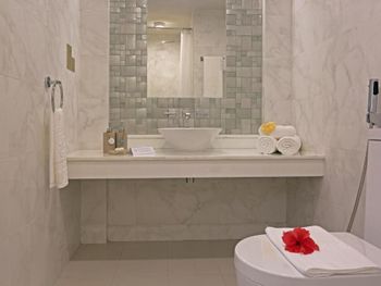 отдыхали в номере 108, дизайн отличный, вид из окна восхитительный, собственный пляж, бассейн, джакузи, два душа, кондиционер, вентилятор и прочие блага в наличии. Всегда чистая территория и пляжи. Отдельная благодарность русскоговорящей Дине, которая помогала нам в решении всех возникающих проблем, прошу руководство поощрить данную сотрудницу. В столовой все большие молодцы. Медикам так же спасибо.