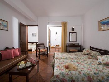 Fitted with stone floors, all rooms and suites include air conditioning and a mini fridge. They open out to a balcony with views of the surroundings. Some accommodation types also have a seating area.