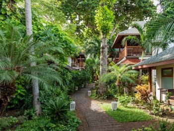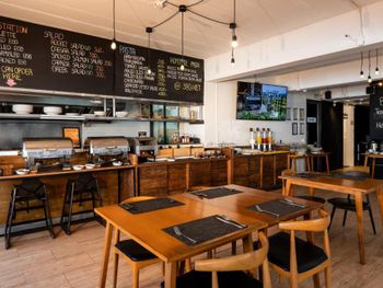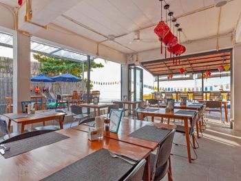 Daily breakfast and hearty local and Western meals are served in the casual open-air setting of the restaurant. It also features evening barbecues and room service.