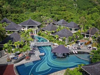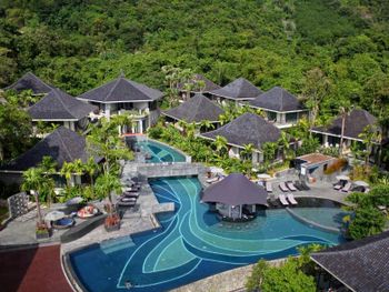 Очень красивый отель. Все утопает в зелени. Домики комфортные, чистые. Виды потрясающие.