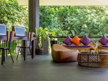 Территория ухоженная и утопает в зелени, домики очень стильные , неплохой тренажёрный зал, очень много разных фруктов растёт на территории. Завтрак на 4 , хотелось кашу и побольше фруктов , например, банальных бананов и манго обнаружено не было .