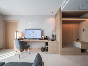 В Mandarin Eastville, Pattaya - SHA Extra Plus во всех номерах имеется кондиционер, телевизор с плоским экраном с кабельными каналами и сейф. Среди прочих удобств — гостиная зона и собственная ванная комната с душем, бесплатными туалетно-косметическими принадлежностями и феном. В собственной ванной комнате есть ванна, тапочки и халаты. Гостям Mandarin Eastville, Pattaya - SHA Extra Plus предоставляются постельное белье и полотенца.