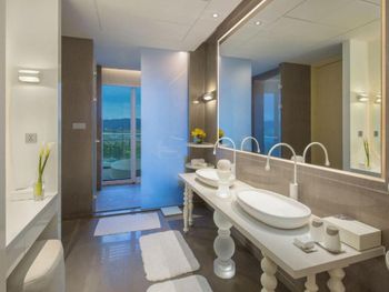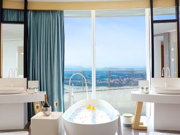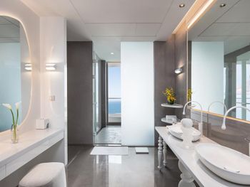 Фантастический номер с возможностью дистанционного управления светом, занавесками и туалетом. Ванная на шикарном балконе с видом на море - просто класс!