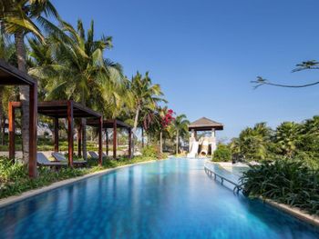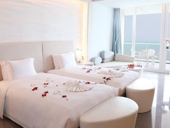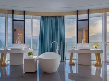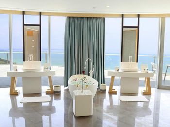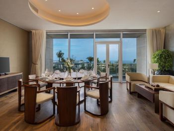 Отличный завтрак! Протяжённый пустынный пляж, но в этой бухте всегда сильные волны, поэтому купаться невозможно, но гулять - это супер! Есть бассейны при отеле- мелкие, но чистые. Красивая территория, но вокруг никакой инфраструктуры, пустынно и совсем некуда сходить. Недалеко есть ресторанный комплекс, где, в принципе, можно питаться, потому что в отеле ценник на обед и ужин зашкаливает... Если вид из окна на море, то красиво! По вечерам приятный бриз. Хорошие ребята в лобби работают, парнишки молодые - такие славные и добрые, дружелюбные и услужливые. Но они не китайцы.