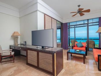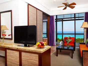 Заселили в 10 утра с самолета, хотя заезд с 15 часов, мы даже успели сразу позавтракать. Сразу плюсик и спасибо! Пляж шикарный, широкий, вода красивая и теплая, лежаков всегда хватало, пляжная зона под мангровыми деревьями очень комфортная. Завтраки прекрасные, разнообразные, выше ожиданий. Номера комфортные - жили в большом двухкомнатном номере с двумя санузлами с видом на горы - для семьи из 4 человек очень удобно. Номера с видом на горы более тихие по вечерам. В пешей доступности прекрасный "ресторанный тупичок", про него все пишут, вкусно, близко, удобно. Уборка в номере - за нее отдельное спасибо! Девушка-хостес сразу подметила, когда мы уходим на завтрак и успевала убраться в это время, молодец! Ставят воду в номер ежедневно, иногда приносят фрукты (по определенным дням). Пользовались местными приложениями АлиПей и ДидиТакси, все работает как часы, ни одного сбоя. Машины приезжают в отель за 2-3 минуты, доехать в Санью стоит около 35 юаней, что для семьи из 4 человек очень экономично. Водители китайские всегда корректны, не скажут ни одного слова, могут включить гимн России, проявляют таким образом гостеприимство)). Кафе и ресторанны в Санье значительно дешевле и разнообразнее, чем вокруг отеля, если поехать на шопинг в ДжойСити, то имеет смысл там же и поужинать. Рядом (10 мин на такси) Феникс Парк со стеклянным мостом и подвесным мостом - интересное место, стоит посетить, впечатлений масса, виды. В отеле всегда "трётся" местный гид - Лёня, меняет нашим туристам валюту, организует экскурсии, помогает в общении с ресепшен, поскольку английский там полностью бесполезен. В меру назойлив, берет под свою опеку всех русских туристов, даже не "пакетников". Мы его услугами не пользовались, но менее подготовленному туристу он может оказаться полезен. Каждое утро присылал нам сообщение - "Доброе утро, пора завтракать!", напоминая о себе ) Вежлив, корректен.