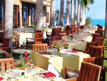 Самый лучший пляж в обоих бухтах. Чистый, море чистое и вполне спокойное. С 17 ноября всегда был жёлтый флаг. (На соседних красный.) Есть шезлонги мягкие. (У соседей деревянные и твёрдые. Соседи постоянно норовят занять шезлонги, но есть слегка ленивые охранники, они гоняют.) Номер убирают каждый день но можно нажать на кнопку "не беспокоить". Воду ставят тоже ежедневно. Иногда приносили корзинку с фруктами (хотя не в первый день и не во второй) но приятно в любом случае. В ноябре не было летающих насекомых почти совсем. Так пара комаров случайных.