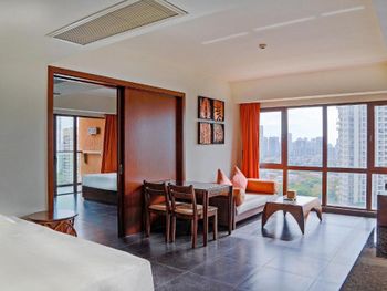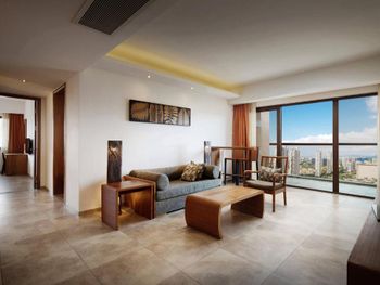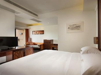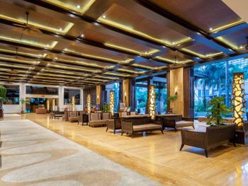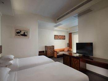 Не понравились заброшенные территории отеля, уход за садом оставляет желать лучшего, для Китая очень низкий уровень, старые обшарпанные стены коридоров. Не понравились служащие, которые оформляли, дали нам с детьми прокуренный номер, по английски не говорят. А вот уборщицы очень хорошие и приветливые, прекрасно убирают, отличные коридорные и другой персонал. А вот на оформлении номера работают не профессиональные люди, которые с удовольствием избавились бы от гостя. Не понравилось, что нам не дали бесплатные два билета в аквапарк, как было заявлено, мы заплатили за аквапарк дополнительно. Аквапарк только бассейны бесплатно, не верьте в эту акцию.