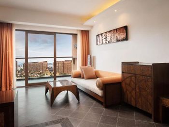 С 21 этажа потрясный вид из окна. Номер просторный. Завтрак достойный. Территория живописная, но на момент проживания многие бассейны пустовали, фонтаны были отключены. Все неплохо, но ремонт не помешал бы.