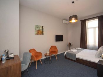Персонал приветливый, готовый помочь. Завтрак великолепный! Ремонт хороший, стильно, уютно. Вид с балкончика на музей и красивый клен. Великолепно