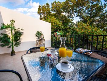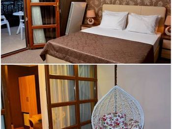 Номер сильно уставший, где-то отходили обои, в ванной грязно, белье на кровати не свежее, но сам матрас был удобный. Мы брали семейный номер с трассой (где стояли качели и обеденная группа), вида с терассы номера (208) не было. Своих денег отель не стоит 100%