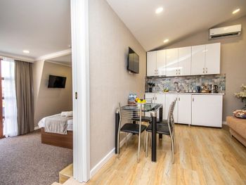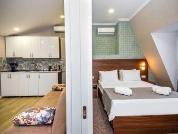 Просторно, в номере была небольшая терраса, небольшая кухня и холодильник тоже в плюс, в целом концепция по дизайну задумана приятная
