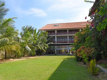 Завтраки скудные- все время одно и то же: сок, тосты с маслом и джемом. яичница с начинкой(не все любят с начинкой). Неплохо было бы предлагать выбор приготовления яйца(вареное, жареное, омлет и т.п.) это не сложно готовить. Добавить хлопья для детей. Добавить какую либо нарезку типо ветчины или сыра. Лист салата. В общем больше разнообразия - больше радости гостей🙃. Номера одни из самых больших на Шри Ланке. Обслуживание - такое ощущение, что в отеле не хватает персонала все время одни и те же два человека, всё приходится ждать очень долго: бар на замке, бармена надо сначала найти, затем он пойдет за ключём. Меню тоже всегда ищут. Не все напитки на баре есть в меню, нужно спрашивать цену заранее. Уборку надо просить,что недопустимо в отеле 4*. Нет табличек убрать-не беспокоить,нет прачечной, неудобно если останавливаешься на длительный срок. Персонал нужно обо всём просить. люди не стесняйтесь разговаривать с ними а то так и будете есть одно и то же яичницу весь срок. В ванной почему-то нет мыла🤷