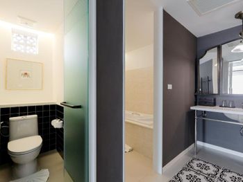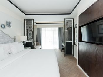 В числе удобств номеров письменный стол, кондиционер, чайник, холодильник, сейф, телевизор с плоским экраном, балкон и собственная ванная комната с душем. Кроме того, в каждом номере установлен шкаф для одежды.