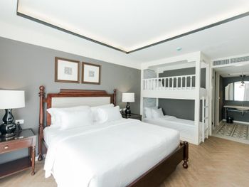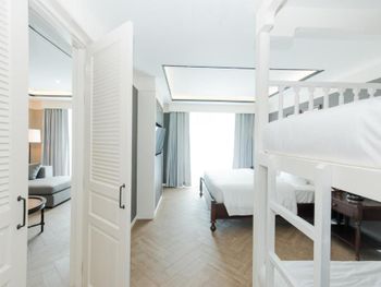 Второй раз в этом отеле, ребенку нравится двухъярусная кровать в семейном номере. Номер большой, удобный, много места. Бассейн небольшой, но красивый, с ночной подсветкой светодиодами, как звёзды на дне. Лобби красивое.