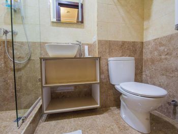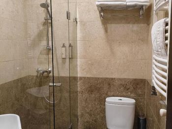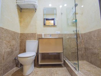 Номер достаточно тесный. При въезде в номере было прохладно, если не сказать холодно. Отопление достаточно шумным кондиционером. Унитаз зажат между стеной и тумбой под раковину. Тучный человек может вообще не вместиться, я пару раз ударился об угол тумбы.