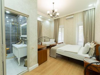 Удачное расположение в центре, замечательный персонал, своя парковка- нам это было важно, чистый и красивый номер и ванная комната. Очень гостеприимный хозяин. Обязательно еще заедем!!!