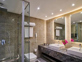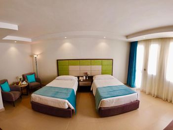Все элегантные номера курорта Maritim Jolie Ville имеют балконы или террасы. Каждый номер оборудован мини-баром, телевизором со спутниковыми каналами, а также условиями для приготовления чая и кофе.