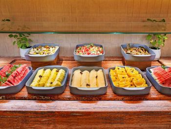Experience a world of flavors with six distinct dining destinations—from vibrant vegan creations at The Herbarium and authentic Moroccan delights at Dar Zellij to fresh market cuisine at The Exchange, seafood and cocktails at The Sunset, flame-grilled specialties at Braai, and Mediterranean favorites at Zaitouna.
