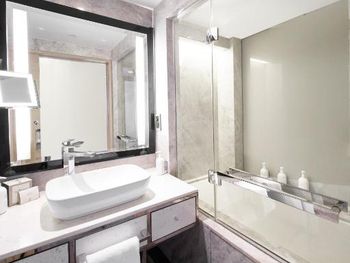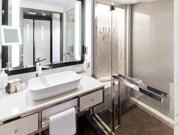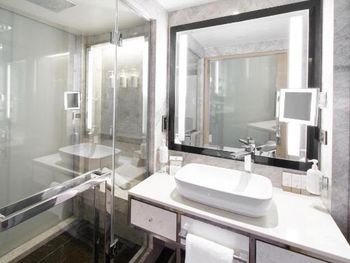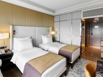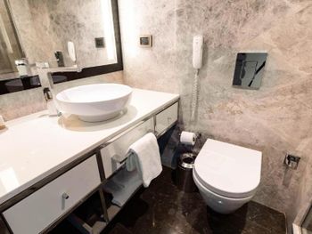 Номер не первой свежести, диван в пятнах, мебель потертая, нет ощущения в номере дорогого отеля, хоть он и был категории Делюкс и цена довольно высокая. Не было халатов и кофемашины, подсветка над диваном и столом не работала и приходилось работать на кровати, чтобы хоть что-то увидеть(((( не работал сейф, не включалась настольная лампа с одной стороны кровати. Все эти неудобства очень испортили впечатление, ощущение, что живёшь в 3 звездах где-то на окраине. Цена сильно завышена за такое!!!