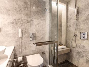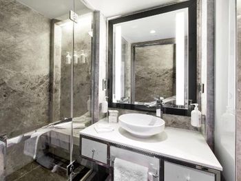 В просторных номерах отеля Marmara Taksim есть шкаф для одежды, рабочий стол и отделанная мрамором ванная комната с ванной и феном. Пол выложен паркетом.