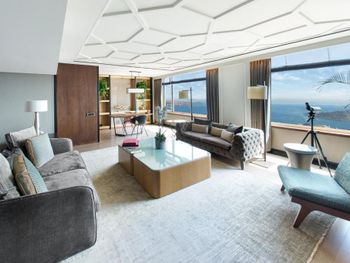 Очень не понравилось отношение главного менеджера ресторана Okra. Мы (нас было двое взрослых - без детей, то есть от нас никакого шума не было) поднялись на самый верхний этаж чтоб полюбоваться вечерним видом на море. При входе в ресторан нас встретил главный менеджер, он обозначил нам место где мы должны стоят чтоб мы не помешали гостям ресторана. К слову там все лишь 3-4 столика были заняты остальные были свободны и мы никак не могли помешать гостям ресторана. Стало тошно от такого высокомерного поведения, мы сразу ушли, но все равно остался очень неприятный осадок. Я ведь не с улицы зашел в ваше заведение. За 5 суток проживание в этой гостинице тоже заплатил нормальную сумму могли бы быть чуть повежливее