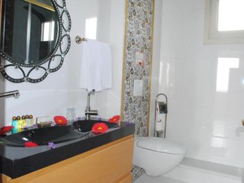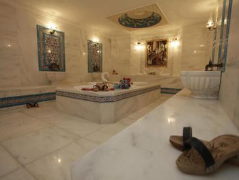 Грязная посуда: часто попадались недомытые тарелки и чашки. Еще нам совсем не понравился хамам. У них не было даже воды, чтобы попить. Когда мы попросили воду, нам хотели налить из бутылки из-под колы, это было очень противно. В хамаме не работало джакузи. В душе не было даже шампуня. Мыло для хамама они используют обычное отельное маленькое, нет даже мыла для хамама. Шампунь тоже пришлось выпрашивать. В-общем, если пойдете в хамам в этом отеле, берите с собой воду, мыло и шампунь.