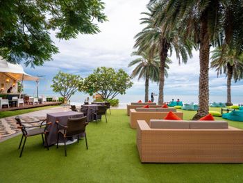 Отель на первой линии, пляж песчаный. Море чистое. На пляже продают фрукты, так что далеко ходить не нужно) Что касается магазинов и кафе. Направо от отеля буквально 3 минуты - family mart. Примерно в 7-10 минутах ходьбы торговый центр Bluport. Там же 7/11.