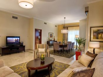 Номер, хоть и указанно, что после ремонта, кажется несколько устаревшим и замечания эти относятся, в основном, к ванным комнатам и кухне. Как будто бы их не ремонтировали, а лишь хорошо отмыли. Несмотря на то, что завтрак был включен в стоимость, нас обязали платить за детей по 55 дирхам за человека в день. Сам завтрак на троечку. В целом, каждый день предлагаются одни и те же блюда и не сказать что большого выбора. Несколько тяжеловато длительное время проживать в номере с тонированными стеклами, но видимо это местная специфика, по-другому было бы еще тяжелее.