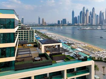 Совершенно новый отель, везде очень современный и классный дизайн - номера, лобби, рестораны. Но в лобби очень холодно. Это Дубай и тут везде кондиционеры, но холоднее чем в нашем отеле не было нигде. Можно было бы поднять температуру на пару градусов. В основном ресторане помимо привычной европейской еды всегда есть выбор индийских блюд. На завтрак есть вкусная каша, ребенок оценил. Хорошая gelateria с настоящим итальянским мороженым. Большие и комфортные номера, почти все с видом на море, или боковым видом. Большой и благоустроенный пляж, причем первую линию не занимают для типа VIP гостей, любой гость может ей воспользоваться, если свободно. В море стоит сетка от медуз. Набережная, по которой всегда можно прогуляться, много разных кафешек рядом.