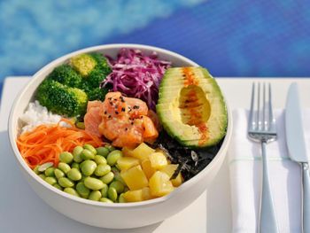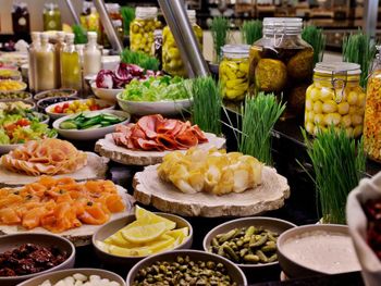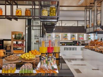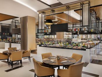 По утрам для гостей сервируется завтрак «шведский стол», завтрак по меню и континентальный завтрак. При Marriott Resort Palm Jumeirah, Dubai работает ресторан, где подают блюда карибской кухни, блюда итальянской кухни и блюда японской кухни. По запросу для гостей приготовят вегетарианские, безлактозные и халяльные блюда.
