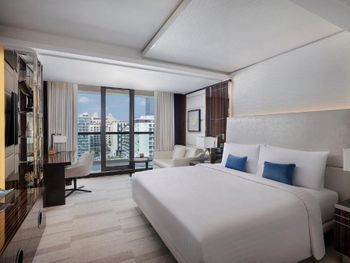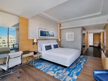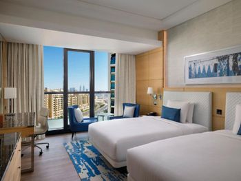 В номерах Marriott Resort Palm Jumeirah, Dubai установлен кондиционер, сейф и телевизор с плоским экраном. Среди прочих удобств — письменный стол, кофемашина и мини-бар, а также собственная ванная комната с биде. Помимо собственной ванной комнаты с душем и бесплатными туалетно-косметическими принадлежностями, в некоторых номерах в Marriott Resort Palm Jumeirah, Dubai из окон открывается вид на город. Гостям Marriott Resort Palm Jumeirah, Dubai предоставляются постельное белье и полотенца.