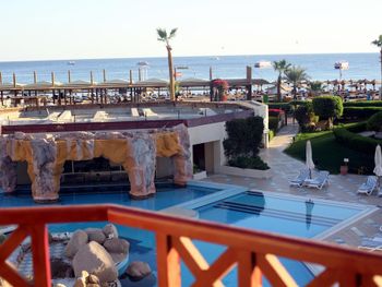 Персонал общается так, как будто мы им должны. Складывается такое ощущение что все понаехали и мешаем им жить. Самое большое разочарование это официант Хамада (работает на пляже) - при возникновении вопроса показал непрофессионализм, хамил и испортил своим отношением наш отдых. Есть небольшая часть персонала, которая воспитанная и более менее относится к отдыхающим, но всё равно, сервис отсутствует. Наливают напитки в мизерные пластиковые стаканы, чтоб вы понимали, объём 0.1 мл.! На человека максимум дают 2 таких стакана, я б назвала их стопками, из которых пьют только крепкие напитки. Мало того что неприятно из таких пить и напиток быстро нагревается, я купила себе пластиковый стакан, побольше, 0,3 мл., И даже в свой стакан, мне нельзя было наливать, переливать! Приходилось прятать как в каком то детской лагере, ну это уже реально до смешного! И да, бар полупустой, пиво постоянно заканчивалось, приносили по 15 бутылок на весь пляж и бассейн! Я такое в первый раз вижу, лучше не брать all inclusive, нет в этом смысла. По питанию в ресторане, очень однообразно. Голодными не оставались но и удовольствия от еды не было. Так же в ресторане где были завтраки/обеды/ужины не хватало официантов-напитки приносили только тогда, когда собирались уходить, при том, что мы сразу делали заказ. Номера уставшие, требуется ремонт, но потом привыкаешь. За такие деньги-есть намного лучше отели, за пару дней до этого, отдыхали в Stella Di More- где отличный сервис, обслуживание, номера, вид и еда!