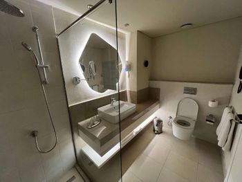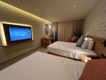 Хорошо работает служба безопасности, забрали нож для фридайвинга). Номер просторный. Вид с балкона хороший на искусственные горы. Персонал старается, но не справляется.