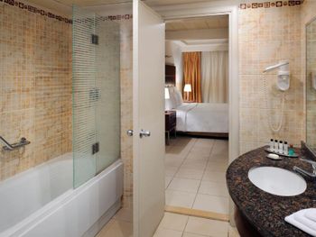 Проживал в этой гостинице, это не 5* . Максимум -3* . Номера требуют ремонта , ещё лет 5 назад. Хотя я жил на 1 этаже , с видом на бассейн. Даже в самом задрипанной гостинице в России такого нет. Душ поломан, ванна треснутая. Завтраки ужасные, кроме омлета остальное даже с голодовки есть не будешь. Воду в номере не дают . Все очень печально. При заселение в этот отель сразу приготовьте 30% доплатить за стоимость номера . Вместо 7000 рублей , вы заплатите 9000 рублей в сутки.