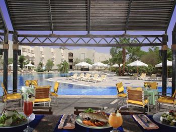 Гости могут поддерживать форму в хорошо оборудованном тренажерном зале курортного отеля Naama Bay Promenade Managed by Accor или расслабиться в сауне и паровой бане. Вокруг большого открытого бассейна установлены шезлонги.