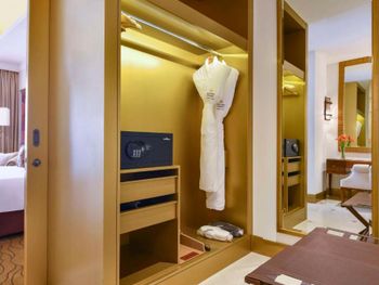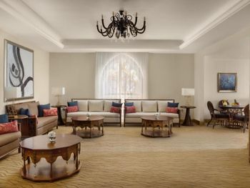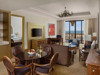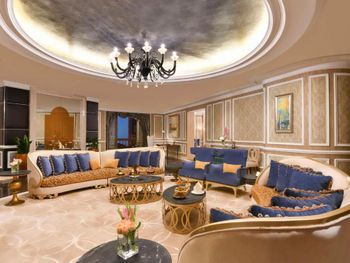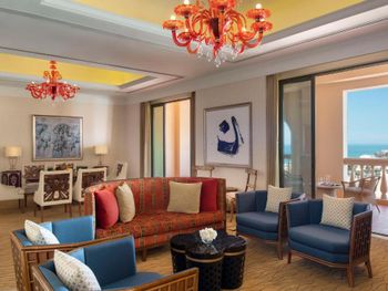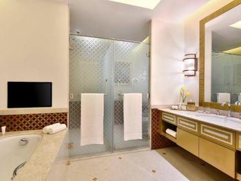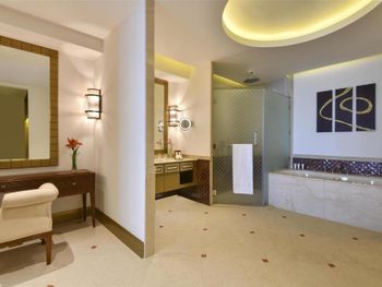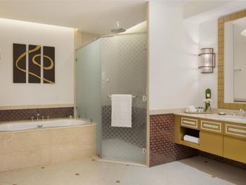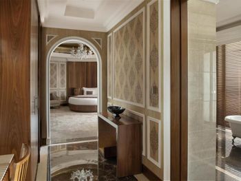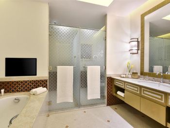 Великолепный интерьер отеля, номера, наполнение номеров. Фантастические кровати с постельным бельем и халатами. Завтраки и рестораны на территории отеля на 5+. Обедать лучше в арабском ресторане на этаже G. Кухня и обслуживание отличные.