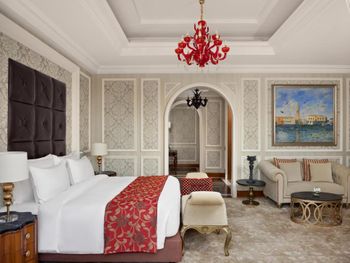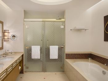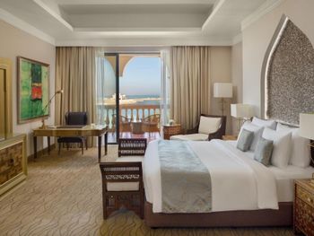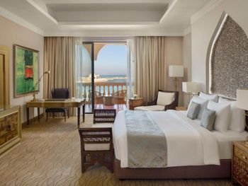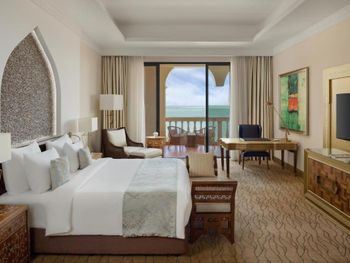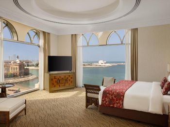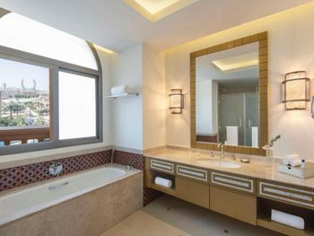Всего в отеле обустроены 281 номер и люкс. В оформлении сочетаются традиции изысканной европейской архитектуры и классические элементы арабского дизайна. В каждом номере и люксе имеется балкон или терраса с видом на Персидский залив, на Жемчужину Катара или на территорию отеля. Собственная ванная комната с ванной укомплектована феном и халатами.