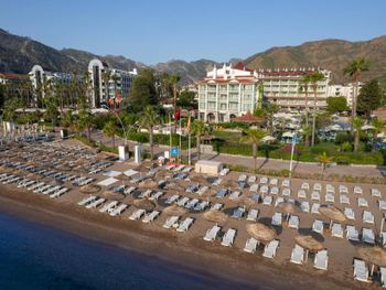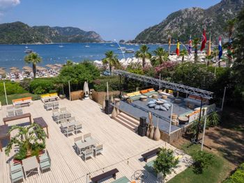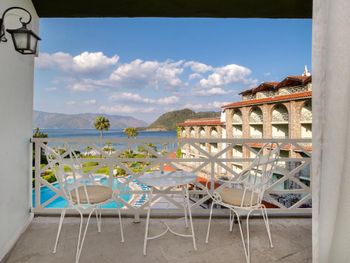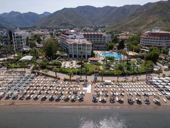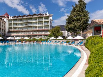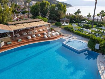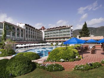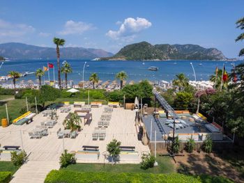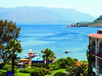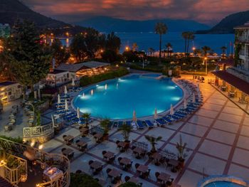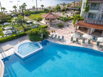 Отличное место. Все цветет. Живописно. Питание. Три вида рыбы на обед и ужин. Отличные баклажаны и овощи на гриле. Мяса практически не было. Арбуз и дыня - каждый день. Пиво хорошее. Очень вкусный кофе по-турецки в баре лобби. Мороженое и выпечка - по расписанию. Питьевая вода в бутылках в свободном доступе в лобби. Хороший вид из номера (боковой на море), хотя бронировали с видом на лес. Звукоизоляция нормальная. Променад вдоль моря до Мармариса. Хорошее транспортное сообщение с городом (маршрутки и кораблики). Колоритный Старый город в Мармарисе. Прекрасный отель за свои деньги. Совет: не зацикливаться и не заострять внимание на небольших недостатках. С удовольствием посоветовала бы отель друзьям