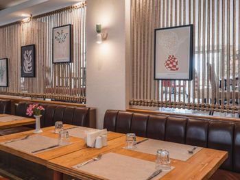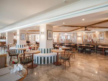 В ресторане предлагаются блюда итальянской, турецкой и интернациональной кухни. В баре подаются разнообразные напитки.